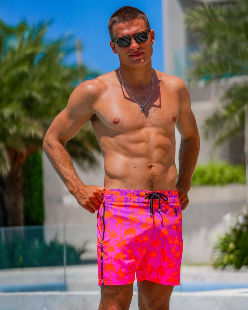 Whether it’s a tropical getaway or a spontaneous weekend escape, these pink swim trunks are made for moments that stand out — just like you.