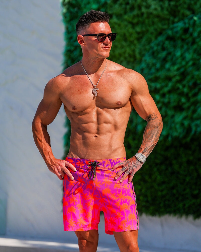Turn every moment into a lasting memory with the Faded Palm Crimson 5" Swim Trunks, where bold design meets effortless comfort. Drenched in vibrant pink and fiery orange, these 5" inseam swim trunks capture that perfect vacation energy: poolside afternoons, ocean swims, and golden hour drinks that turn into unforgettable nights.