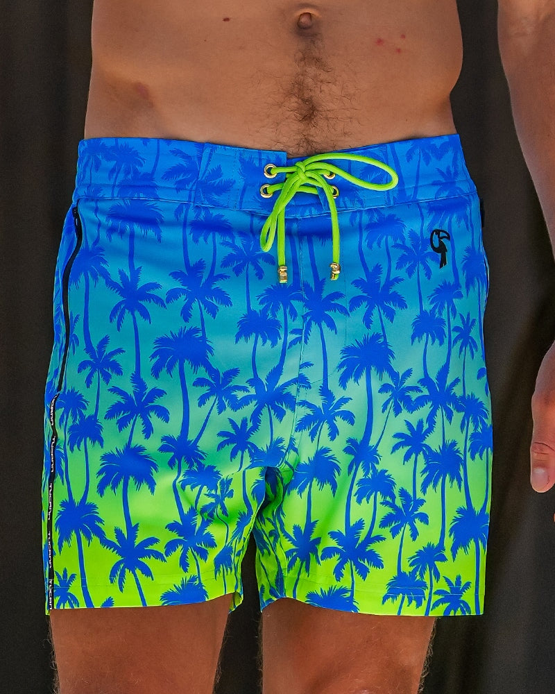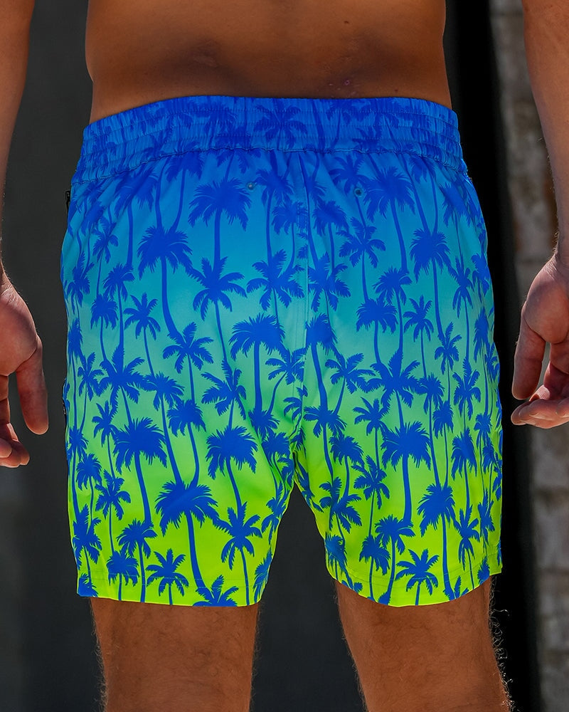 The Faded Palm Lagoon 5" Swim Trunks are made for those who live for sunshine, saltwater, and that carefree feeling of being exactly where you’re meant to be. With a vivid blue-to-lime fade and palm print design, these 5" inseam swim trunks capture the energy of tropical days and endless summer nights.