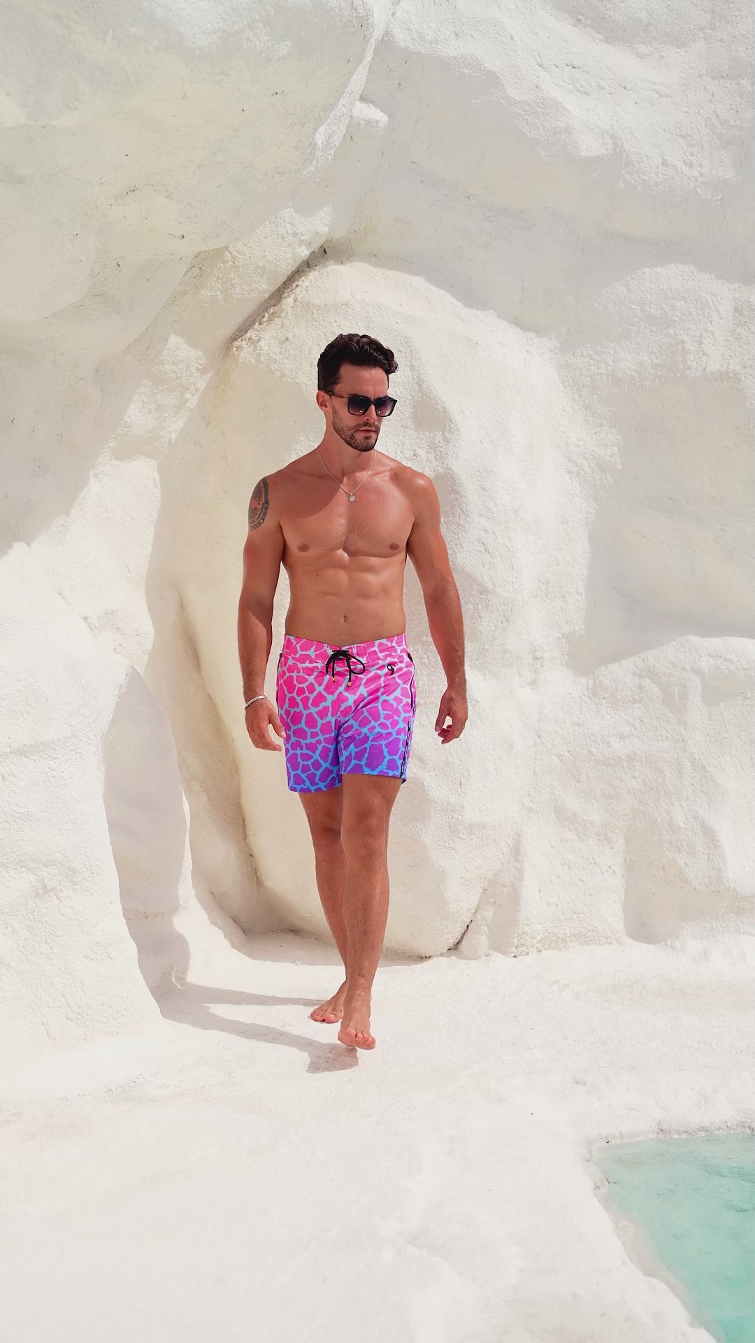 The kind of swim trunks that make you feel like you're already on holiday—whether you're poolside in Positano or catching rays in your own backyard. The Faded Mirage Amethyst swim trunks serve serious main character energy with a head-turning gradient of hot pink and electric aqua that fades like a dream.
