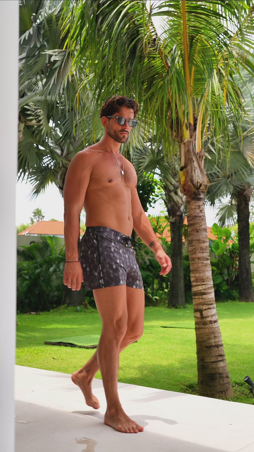 Finished with gold hardware accents, the Dragon Scale Black trunks bring a sleek, confident edge to your vacation wardrobe.