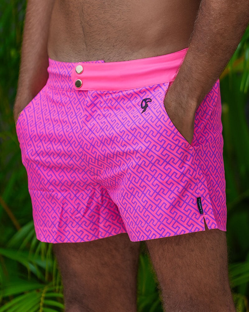 Introducing the pinnacle of luxury swimwear: Tucann Luxe Swim Shorts in Magenta.