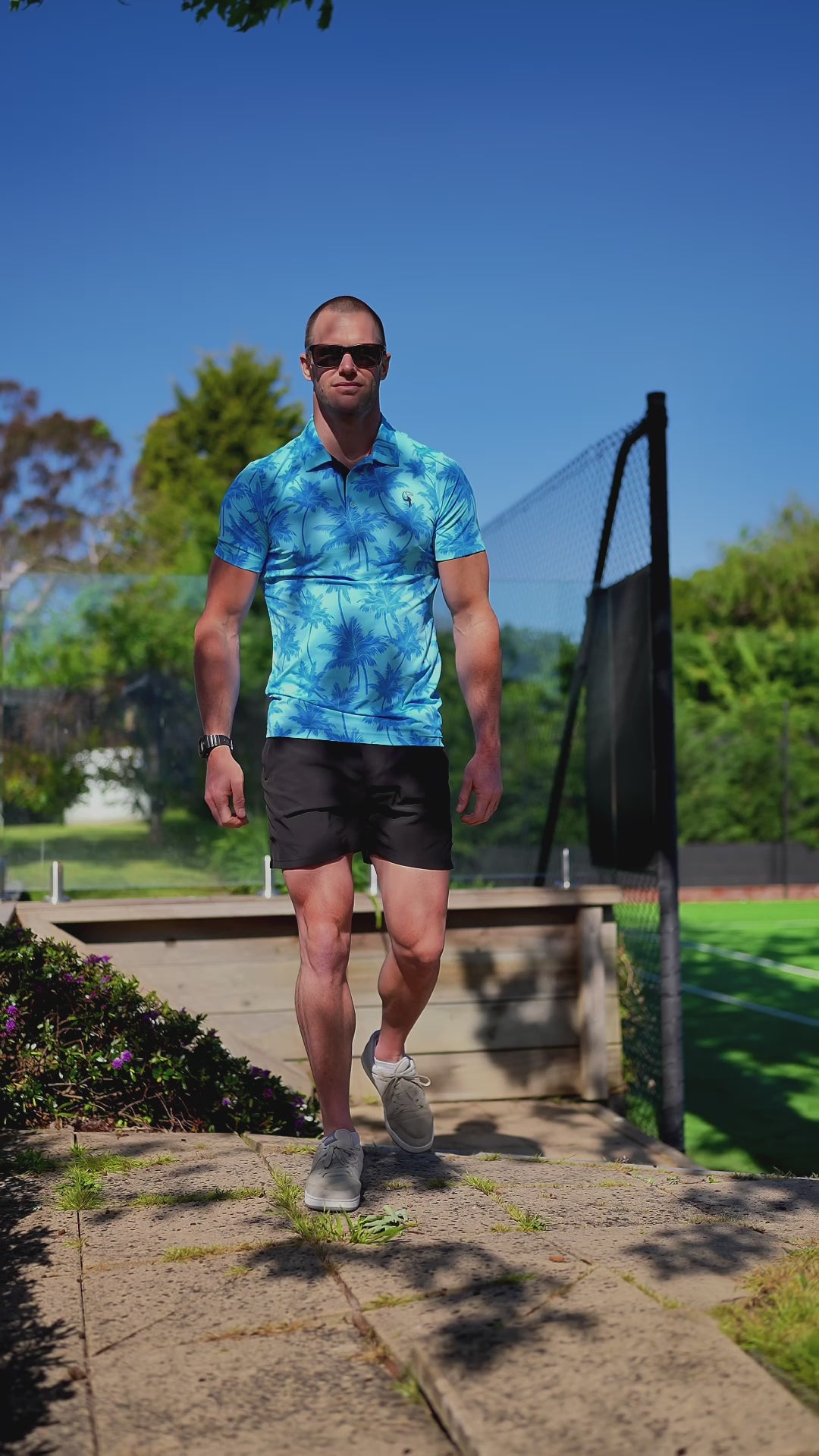 Infuse your wardrobe with a tropical vibe using our Blue Palms Polo, perfect for the golf course or an evening out. Crafted from premium, smooth, and stretchy fabric, this polo offers four-way stretch for unmatched comfort and ease of movement. Its tailored design enhances your physique, delivering a sleek, athletic fit whether you’re teeing off or enjoying a casual night at the bar. Featuring a vibrant blue palm print, the button-down neck and internally detailed collar add a touch of refinement to the bold, eye-catching design. The Blue Palms Polo is your go-to for stylish versatility, combining performance with a standout look.
