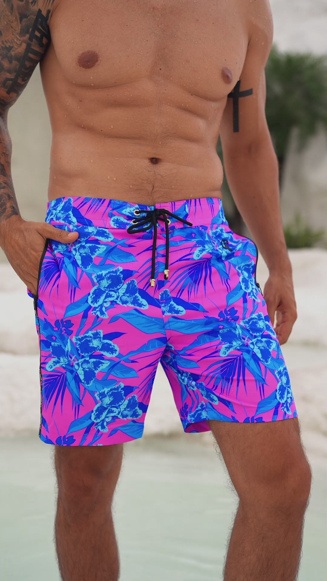 Bring the heat with the Neon Orchid Magenta 7" Swim Trunks, where bold color meets laid-back resort vibes. With a rich magenta base and vibrant orchid detailing, these pink swim trunks are made for sunrise dips, midday mojitos, and golden hour strolls by the water. The 7” inseam offers the perfect balance of coverage and style for all your summer adventures.