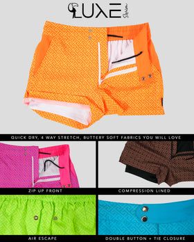 Designed with Italian ink for vibrant, fade-resistant color, these luxurious swim trunks blend sophistication with functionality. The dual button and zip closure with hidden drawstrings create a tailored fit, while two exposed side pockets add sleek practicality. Inside, a supportive compression liner offers comfort and confidence, and the quick-dry fabric keeps you moving effortlessly from ocean dips to sunset cocktails.
