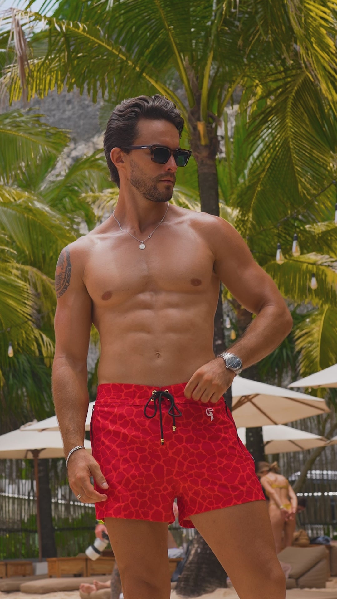 Introducing our Mirage 3" Swim Shorts – a vibrant fusion of style and comfort designed to elevate your tropical escapades. Dive into the wild with our red two tone giraffe print, a playful and eye-catching pattern that sets you apart on any beach. The black drawstring creates contrast and the elastic half waistband ensures a tailored fit that feels just right, combining functionality with fashion. But it's not just about looks – we've engineered these swim shorts for ultimate comfort. Our Aqua Compression Liner isn't just smart; it's a game-changer. Designed to keep everything in place, it goes the extra mile by preventing irritation and chafing, so you can focus on making the most of your sunny getaway. Crafted from super stretchy, quick-drying material, these swim shorts are your ticket to all-day comfort.